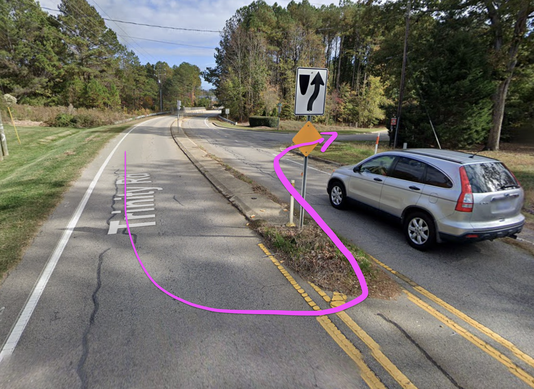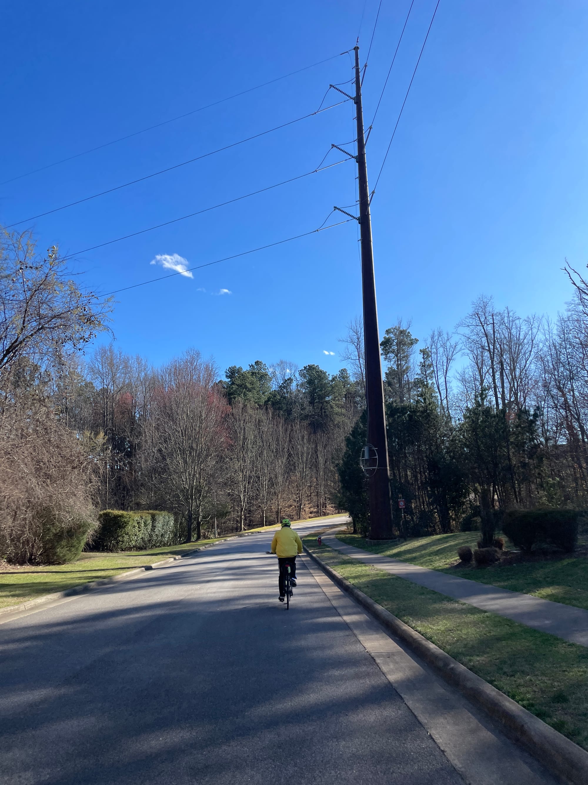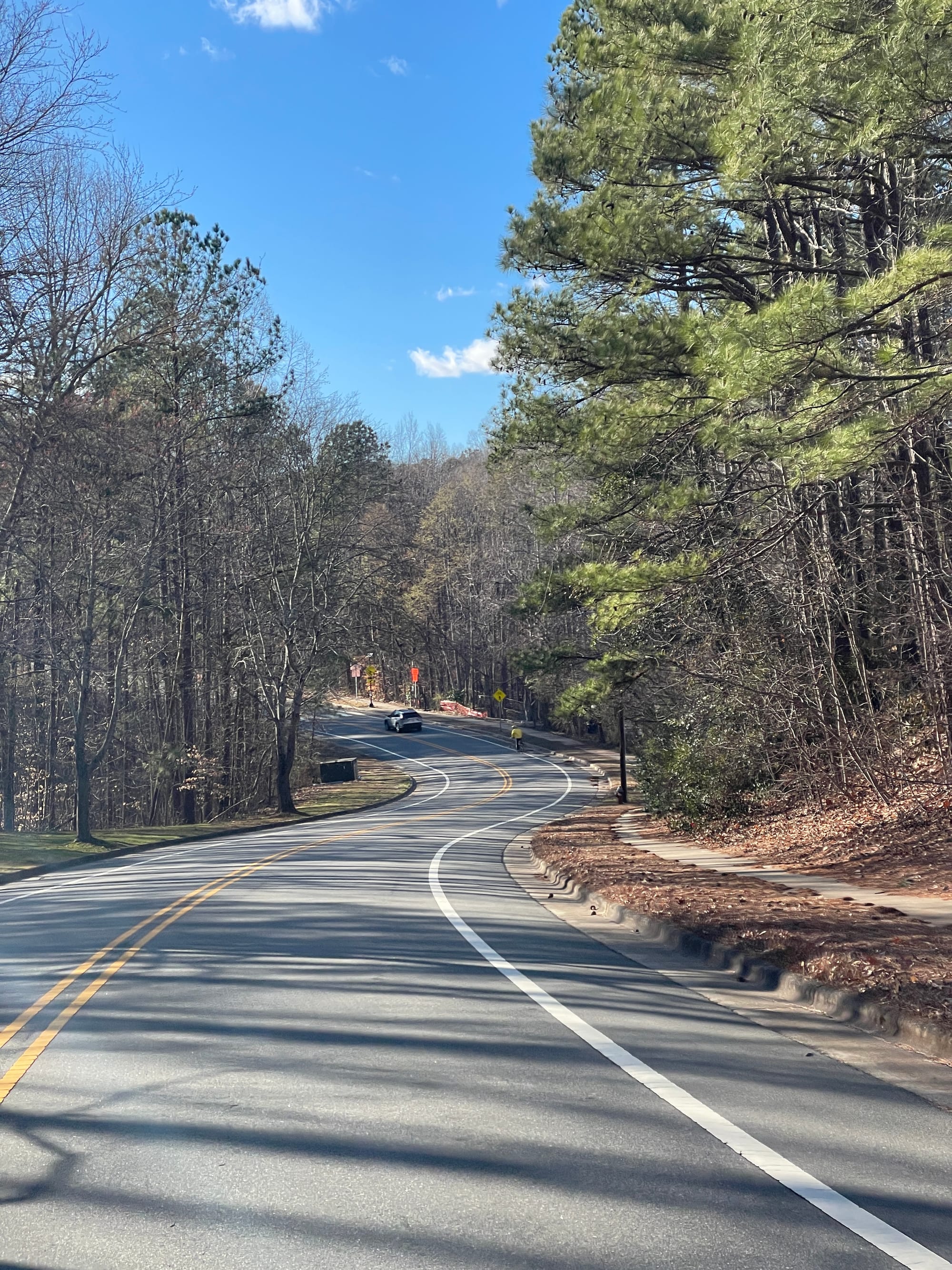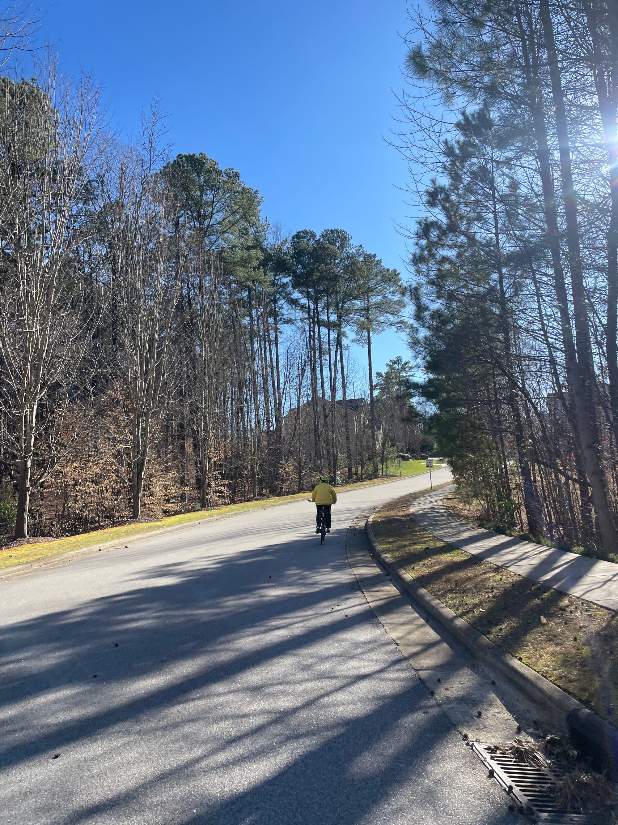 After that crossing, we were on neighborhood roads until Black Creek Greenway. These were super nice, flowy roads and we were able to fly down them. Gravity works, so we had to climb a pretty gnarly hill at one point, but overall it was a good section. From there, we took Black Creek down to Chapel Hill road. We stopped to take a photo with an awesome little sign from the Town of Cary.
