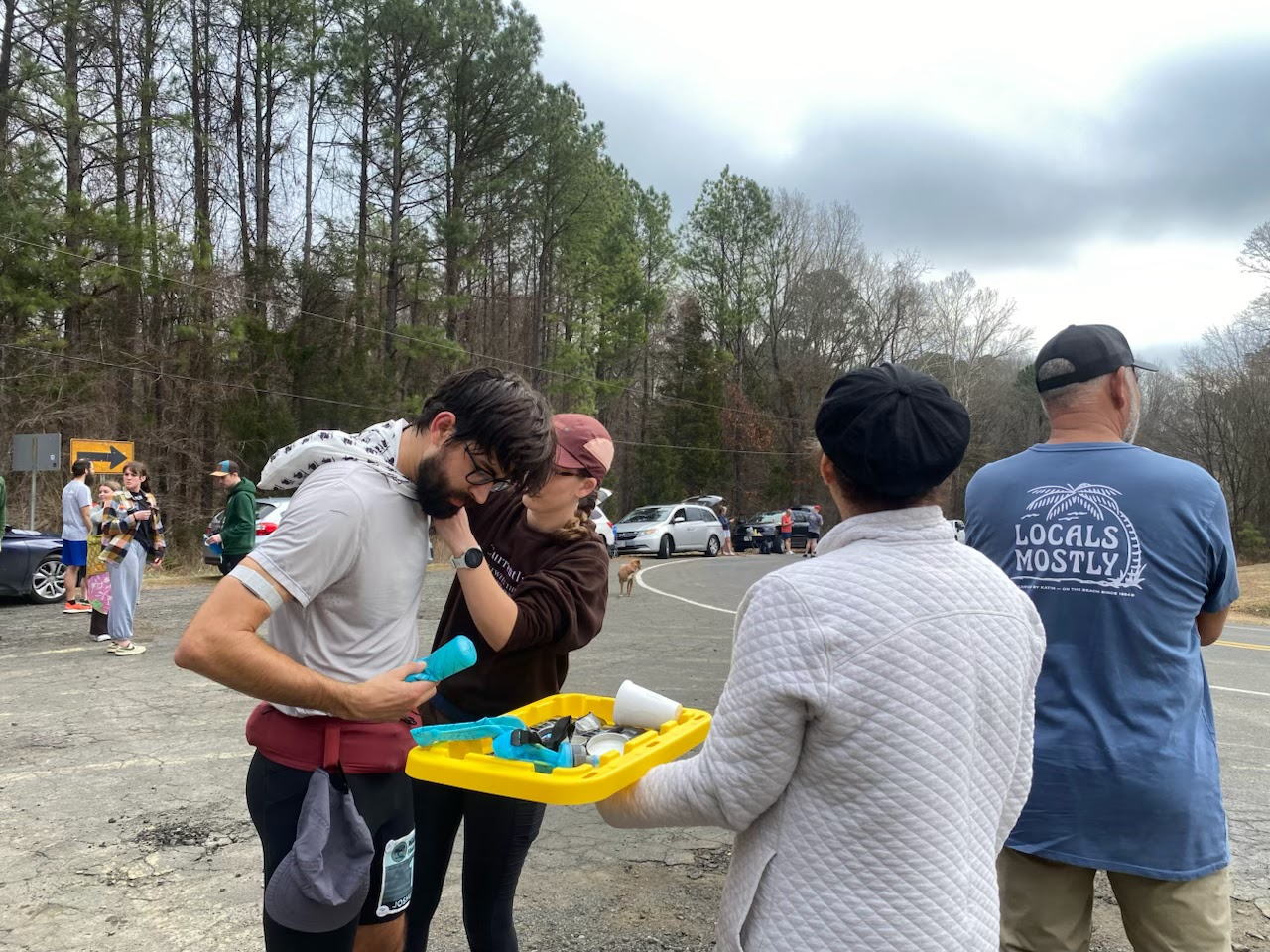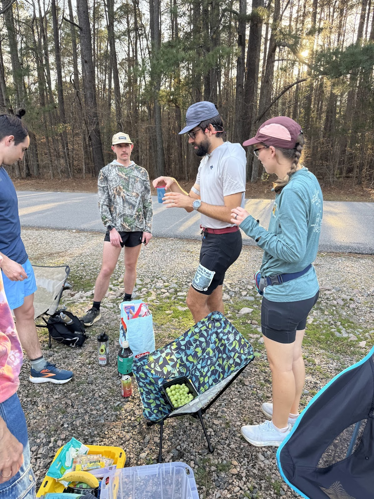 Image 4: Turnaround at mile 16.2 with 2:40 elapsed time. My wife and my parents get me ice, water, and gels before heading back.