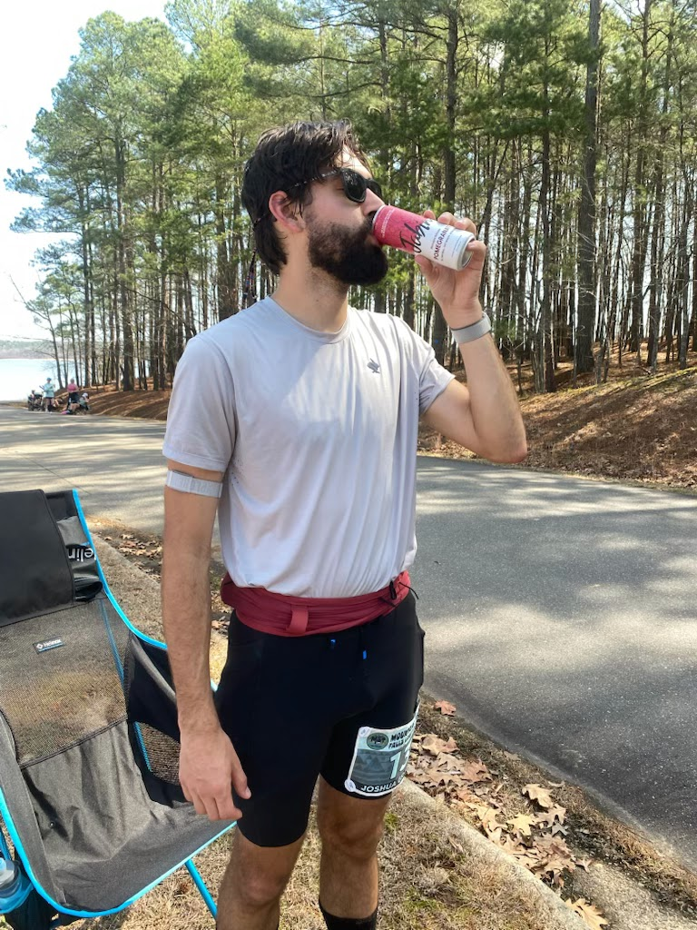 Image 8: Enjoying some grapes and cold brew at mile 53 with 11:05 elapsed time, which is roughly the time it took me to complete the MST 50 mile race one year prior. I have a few more miles alone before Tanner joins me as the sun sets.