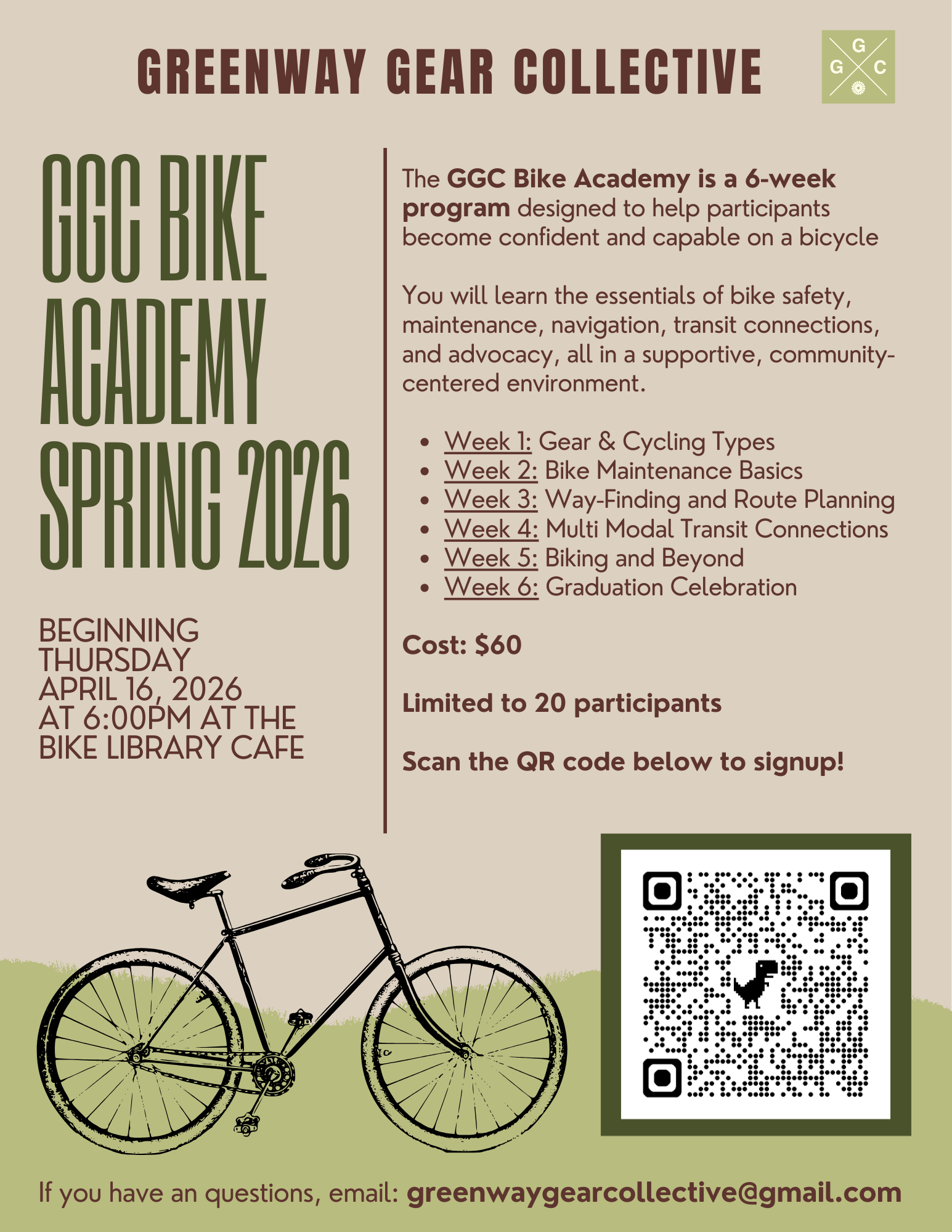 Last fall, we launched our first GGC Bike Academy, a 7-week series covering the basics of biking. We’re excited to bring it back in a refreshed 6-week format starting Thursday, April 16th.