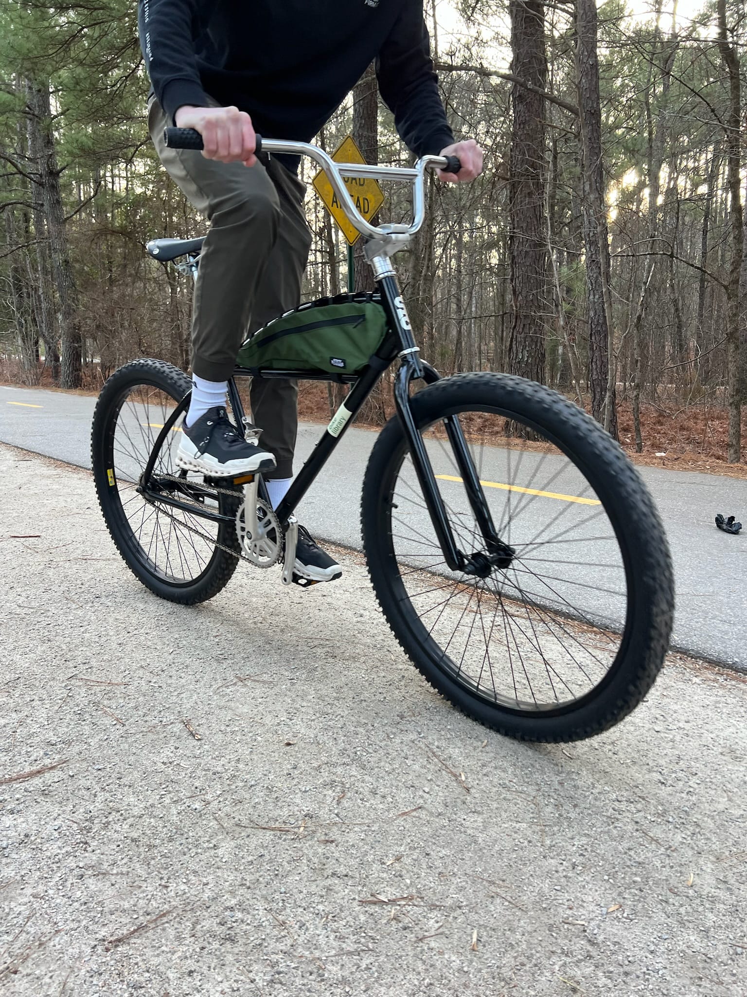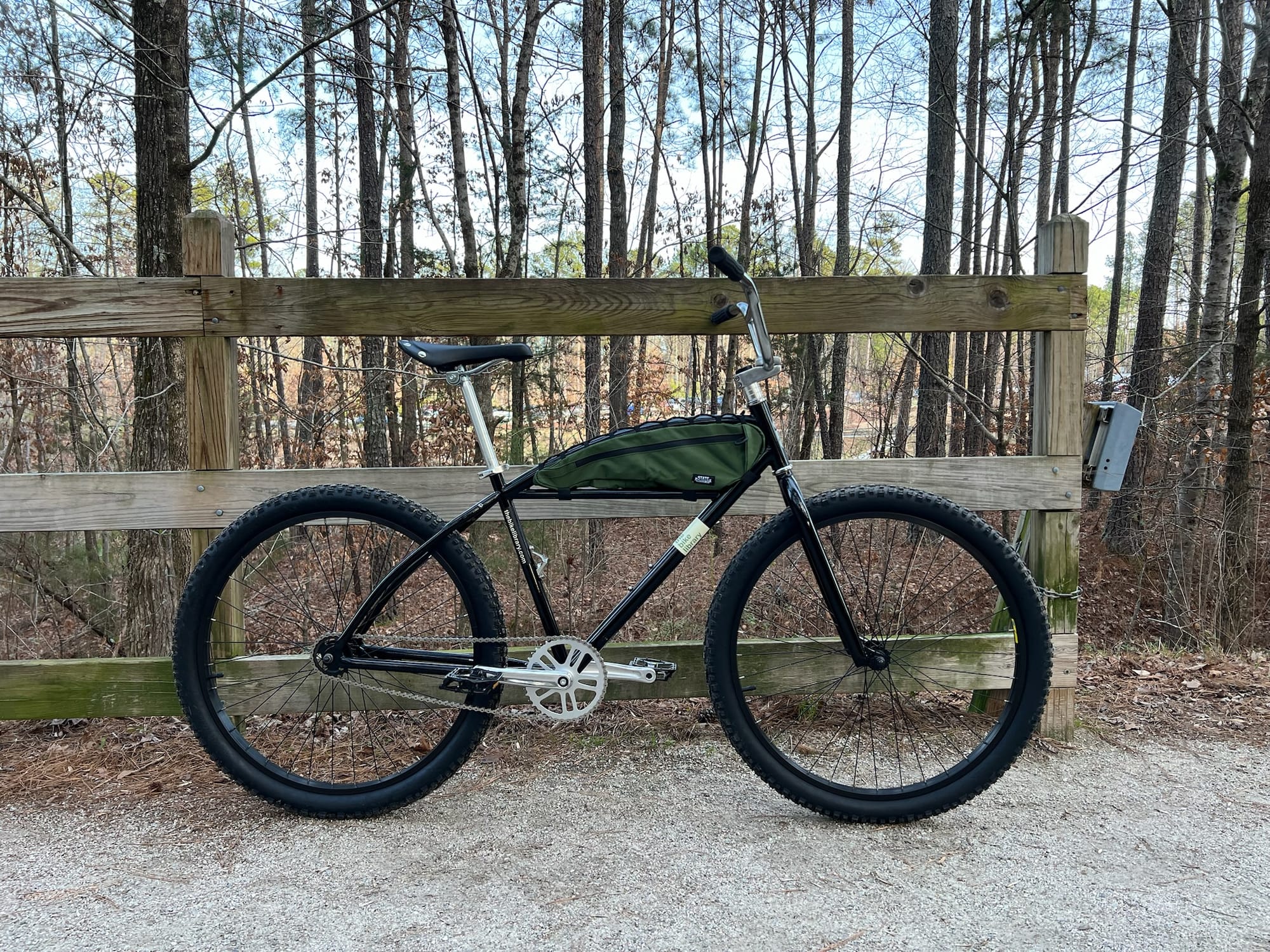 So they get to the trail, unload the bikes, and she hops on. Turns out, the bike was a little too tall on the standover height. This wouldn't be a huge deal, except it's happened before with other ladies who've ridden the Klunker. For all of its "one size fits all" magic and coaster brake simplicity, I have to say: the standover height is damn high. Some people also just don't like coaster brakes. This was one of those moments.
