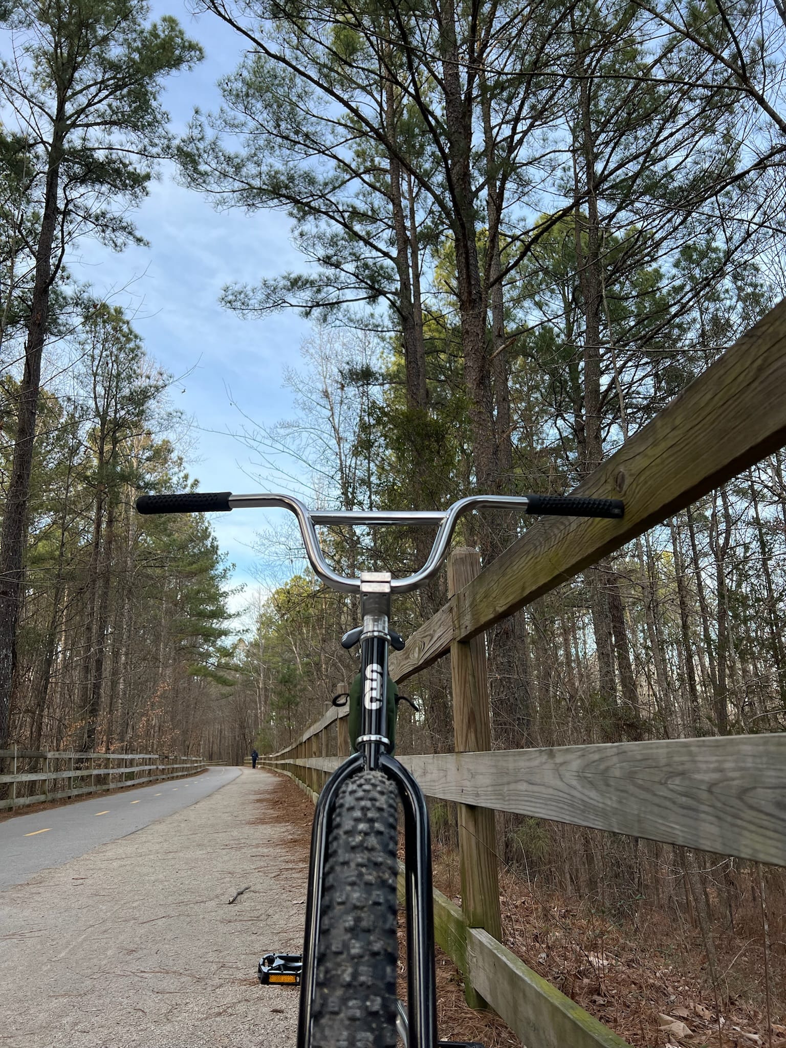 One of the guys I ride with called on Sunday around noon, saying he had rented the bike for his girlfriend and was wondering where to pick it up. I answered his call from my bike in the middle of Umstead - not really in a position to drop everything, ride back home, and get him the bike. So that was lesson 1: