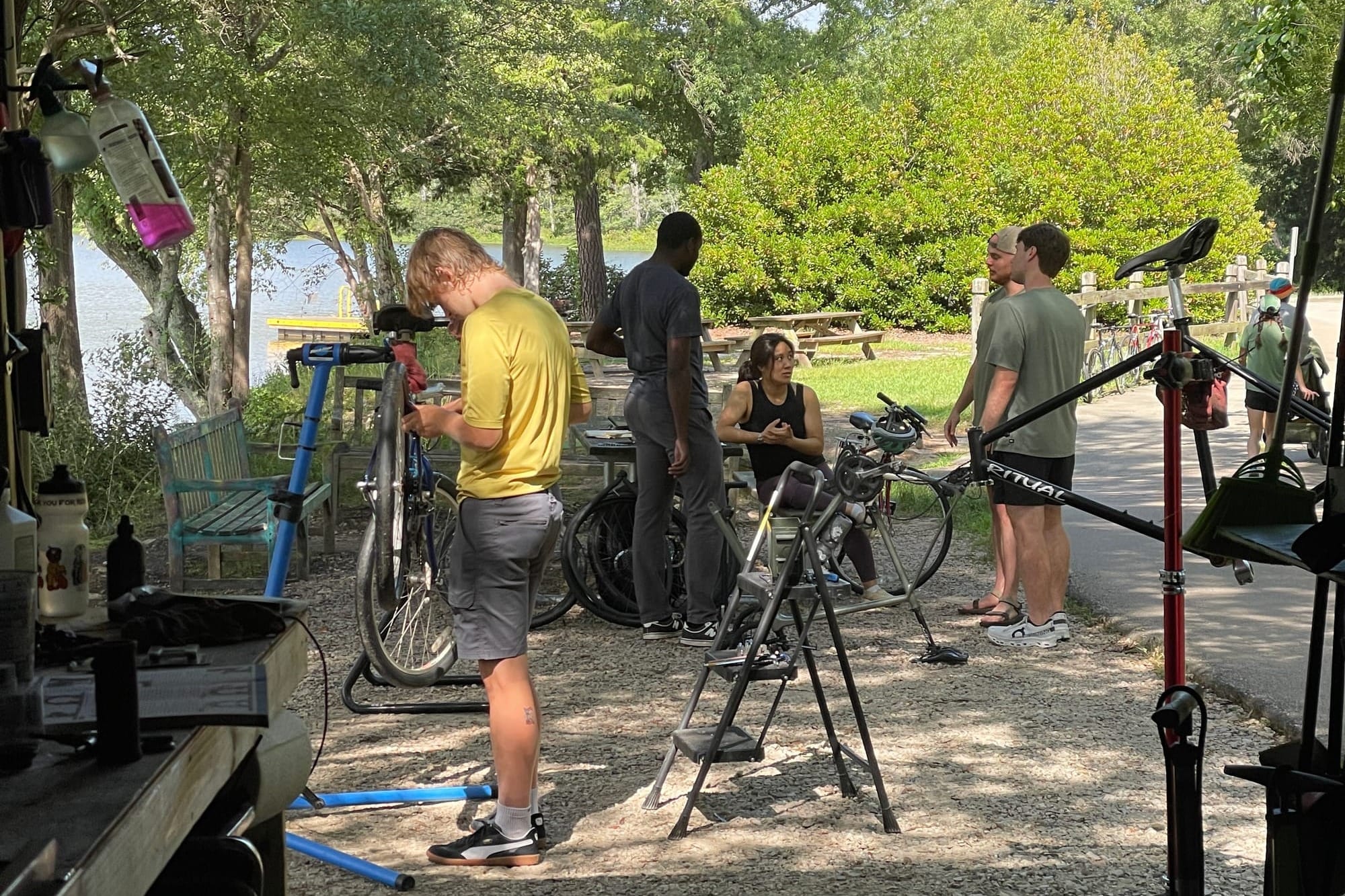 - A desire to work on bikes in the sunshine next to the lake