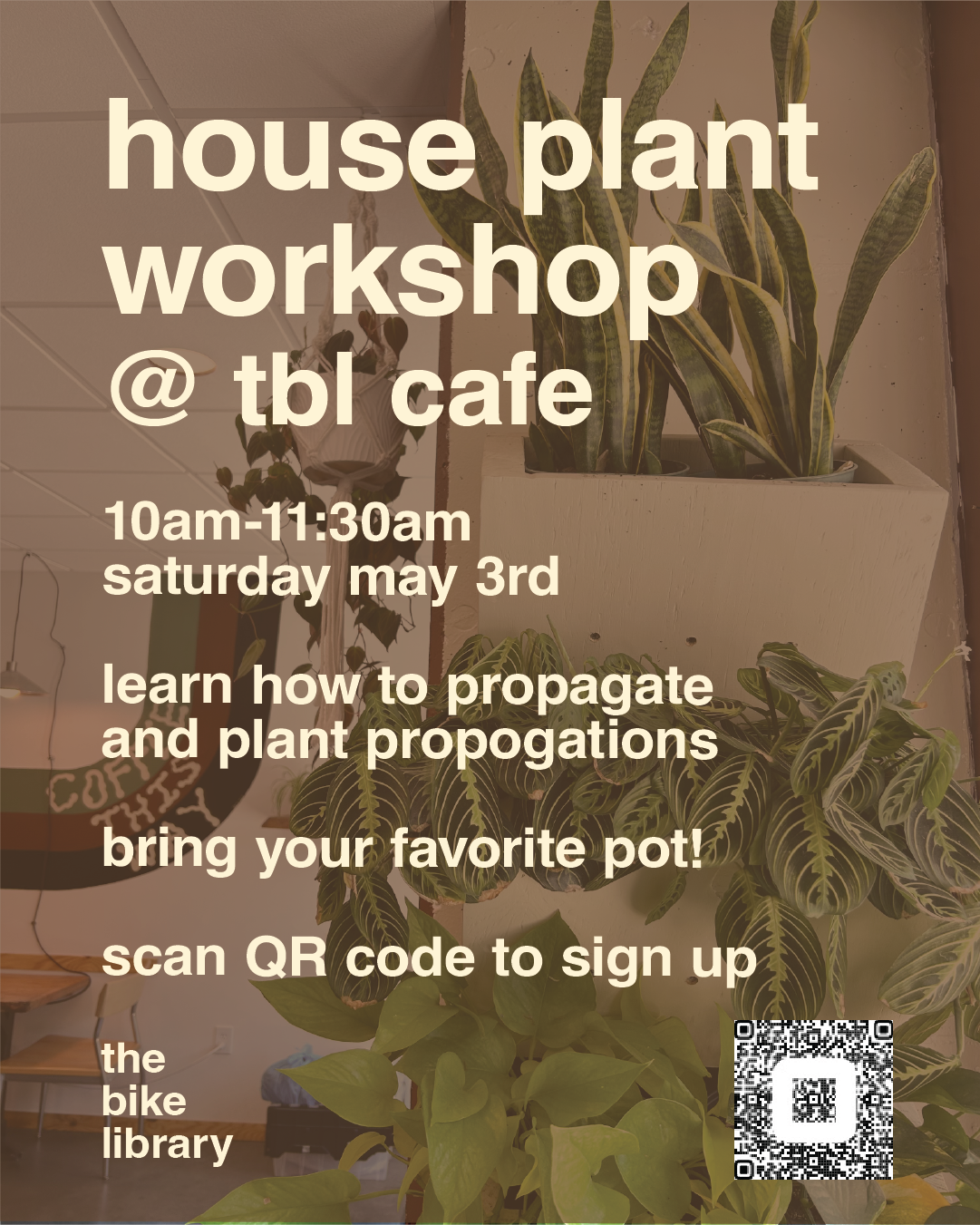 Sunday 5/3 House Plant Workshop at the TBL Cafe 10-11:30am