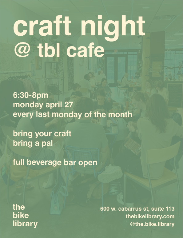 Monday 4/27 Craft Night at the TBL Cafe 6:30-8pm