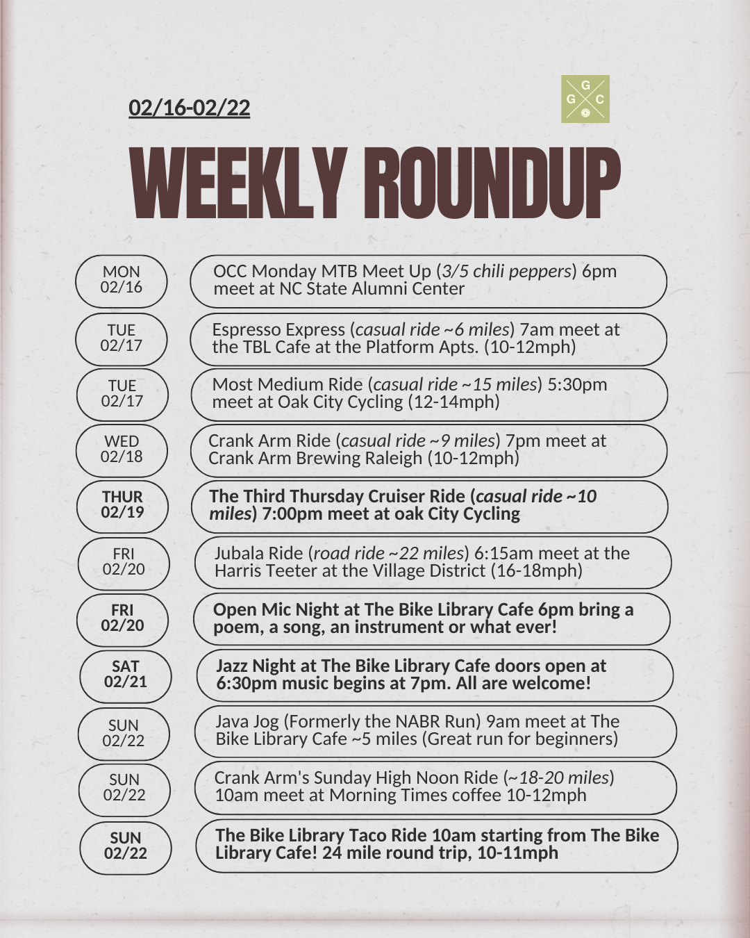 Sunday 2/22 - The Bike Library Taco Ride starting at the TBL Cafe