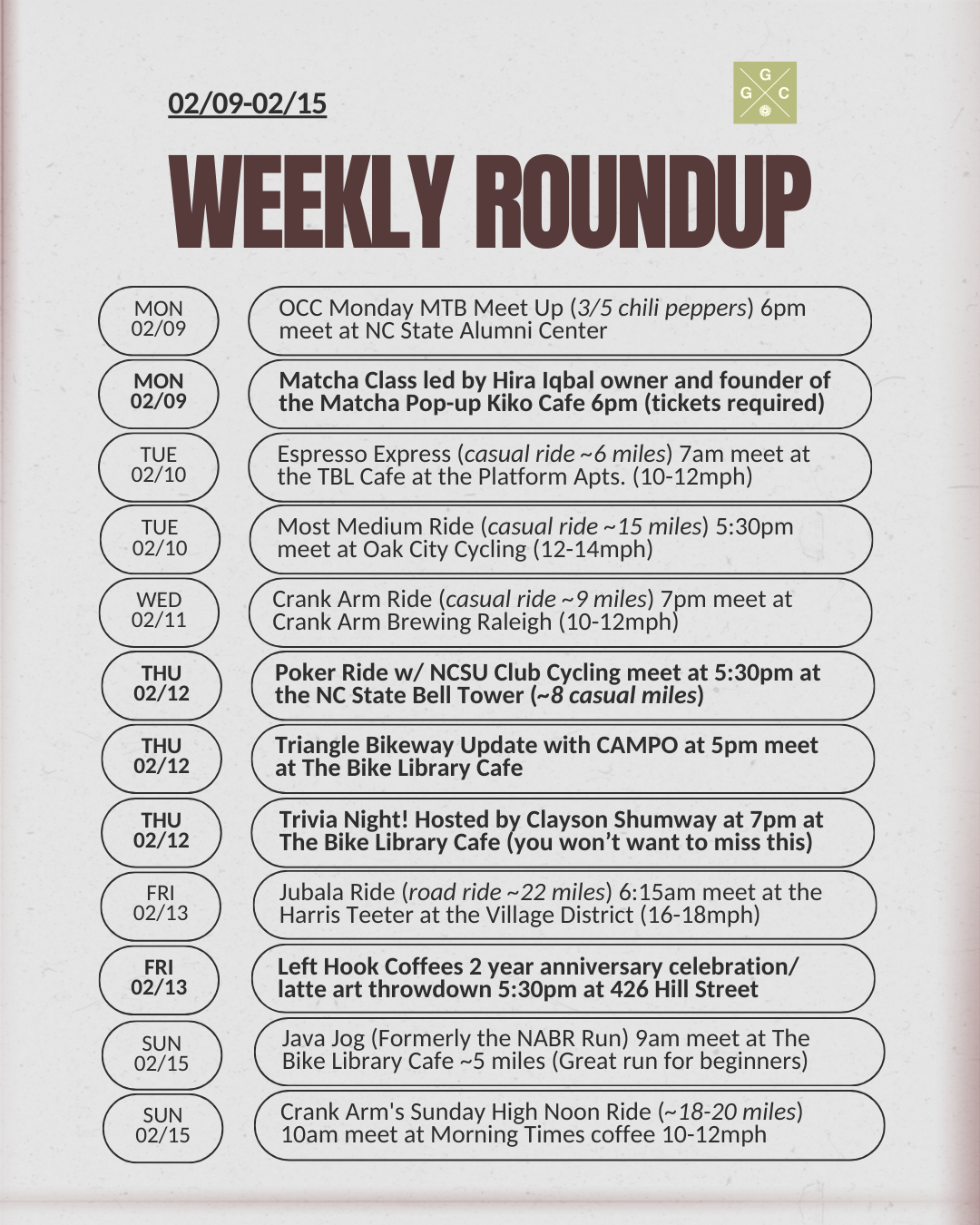 Thursday 02/12 - Poker Ride with NC State Cycling Club