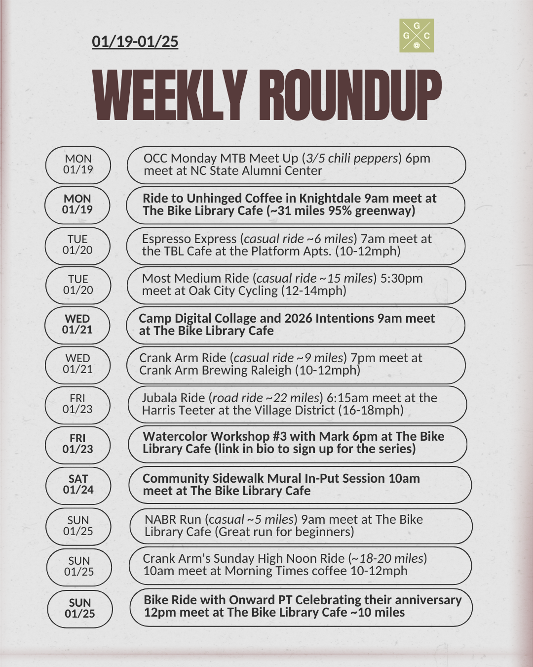 Monday 01/19 - MLK Ride to Unhinged Coffee Co in Knightdale