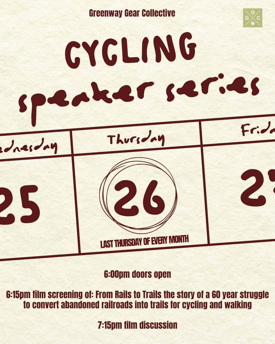 Last month the speaker series got rained out (booooo) so this month will be the first official kick off to the series! We will be showing the film: From Rails to Trails the story of a 60 year struggle to convert abandoned railroads into trails for cycling and walking.