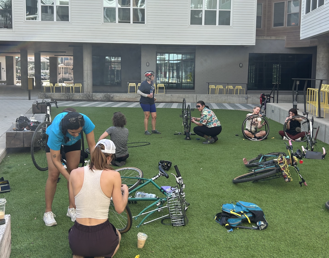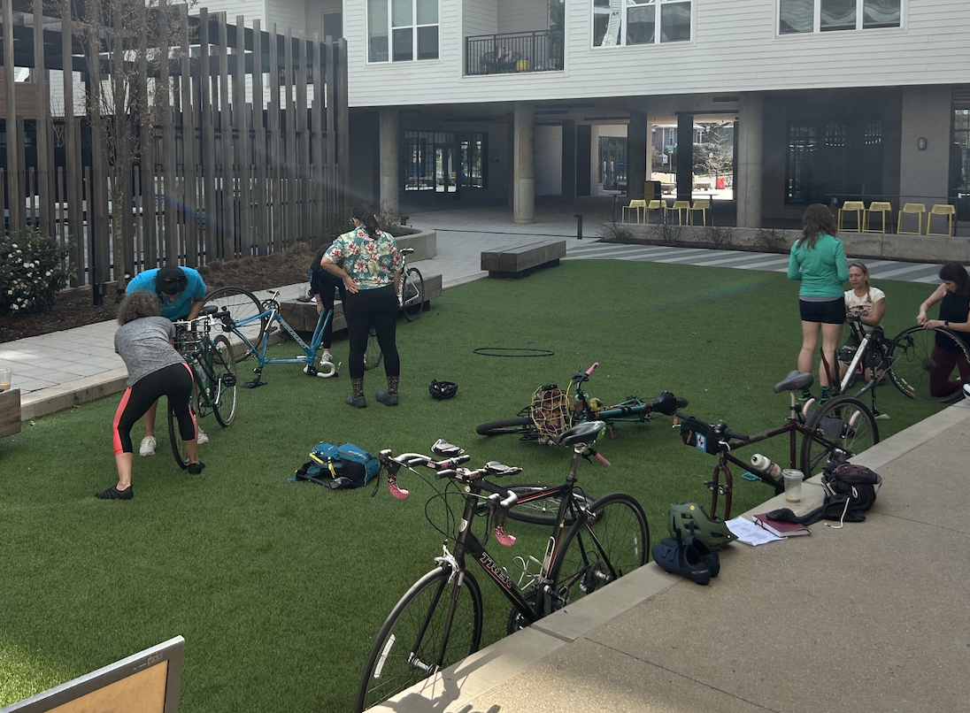 Participants had the chance to get hands-on with their own bikes, working together to learn practical skills like fixing a dropped chain and changing a flat tire.