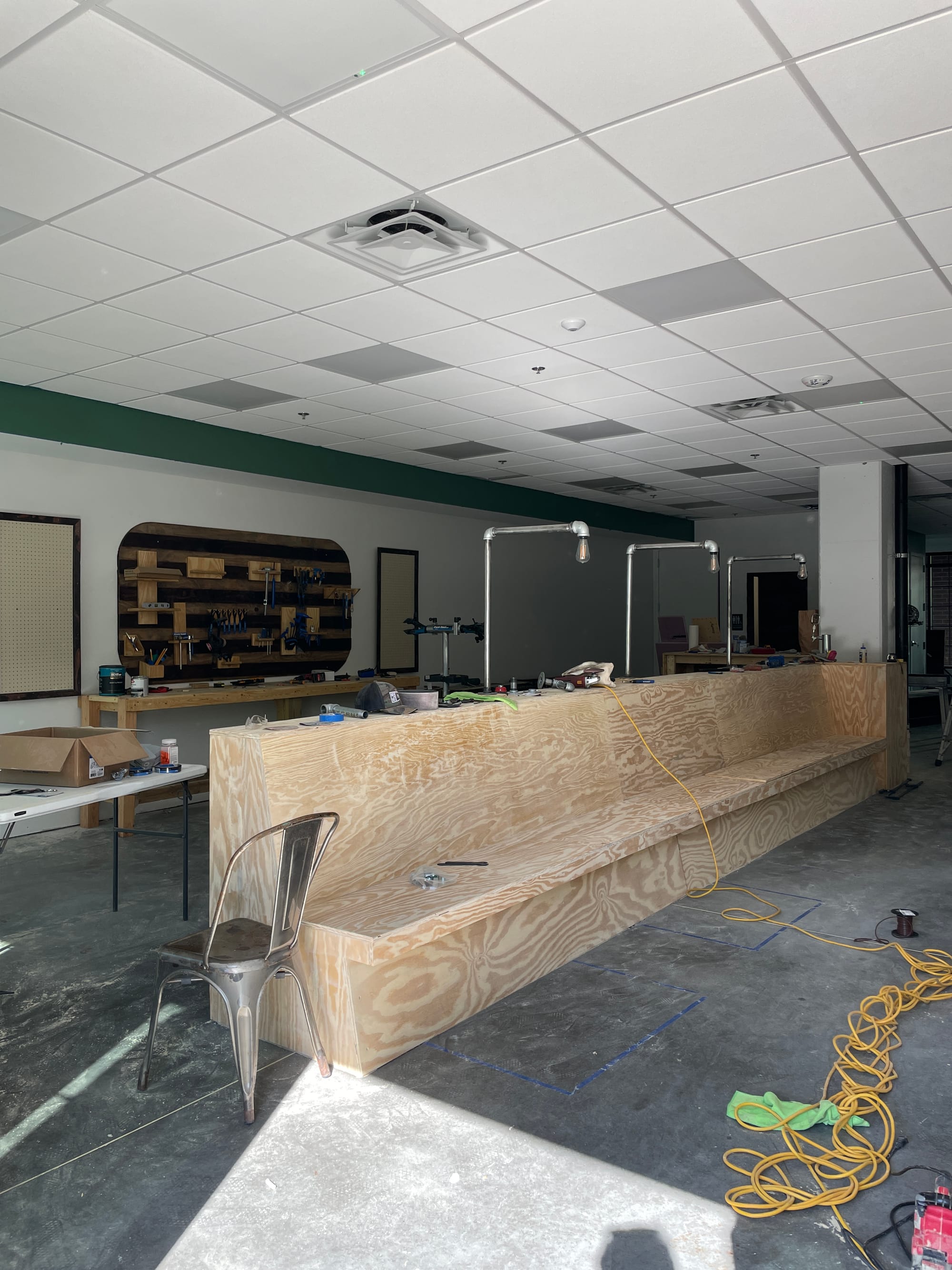 I am not going to go out and make any crazy claims or promises about making it happen or not. Right now, I'm trying to make a bike shop happen. I imagine that there might be a little more meat on the bones of the idea if there's a new cool bike shop in Boylan Heights that's advocating for a race. Let's do that first. The bike shop portion of the new shop at Platform is 90% complete, and we're making progress on the coffee shop portion of the space. Enjoy the progress pics: